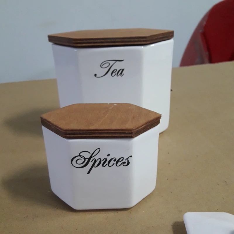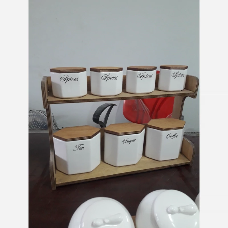 بانکه بزرگ طرح شش ضلعی درب چوبی، 1 عددی